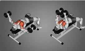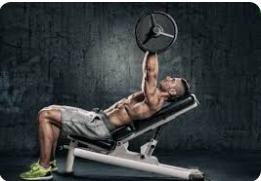 - 인클라인 벤치(30~45도)에 앉아 바벨 또는 덤벨을 들어올립니다.