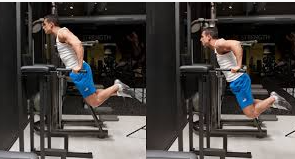 - 딥 바를 잡고 팔을 펴서 몸을 위로 들어올립니다.