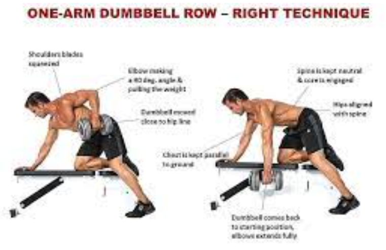 벤치에 손과 무릎을 올리고 덤벨을 당기는 동작으로, 광배근을 고립해 자극할 수 있어 매우 효과적입니다.