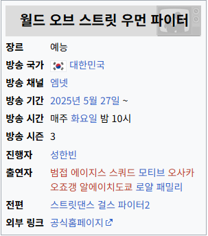 - 방송명: 스트릿 우먼 파이터 시즌3 (Street Woman Fighter 3)