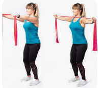 - 양팔을 옆으로 벌리면서 밴드를 가슴 높이에서 당깁니다.
