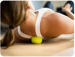 - 테니스 공을 벽과 어깨뼈 사이에 끼우고 상하좌우로 움직이며 눌러줍니다.