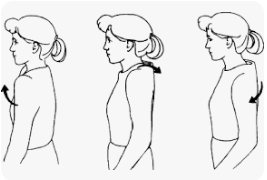- 양 어깨를 귀 방향으로 끌어올렸다가 뒤로 돌리며 내립니다.