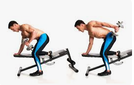 - 한 손에 덤벨을 들고 상체를 숙입니다.