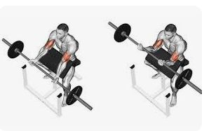 - 팔꿈치를 고정한 상태로 바벨을 천천히 들어올려 어깨 쪽으로 올립니다.