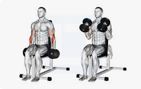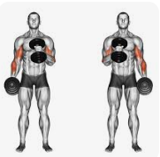 - 팔꿈치를 고정하고 덤벨을 수직으로 들어 올립니다.