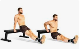 체중을 이용한 삼두근 집중 운동으로, 팔 뒤쪽에 강한 자극을 줍니다. 의자나 벤치를 이용하면 집에서도 쉽게 할 수 있습니다.