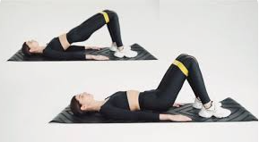 - 무릎을 세우고 바닥에 누운 뒤, 발을 엉덩이 가까이에 둡니다.