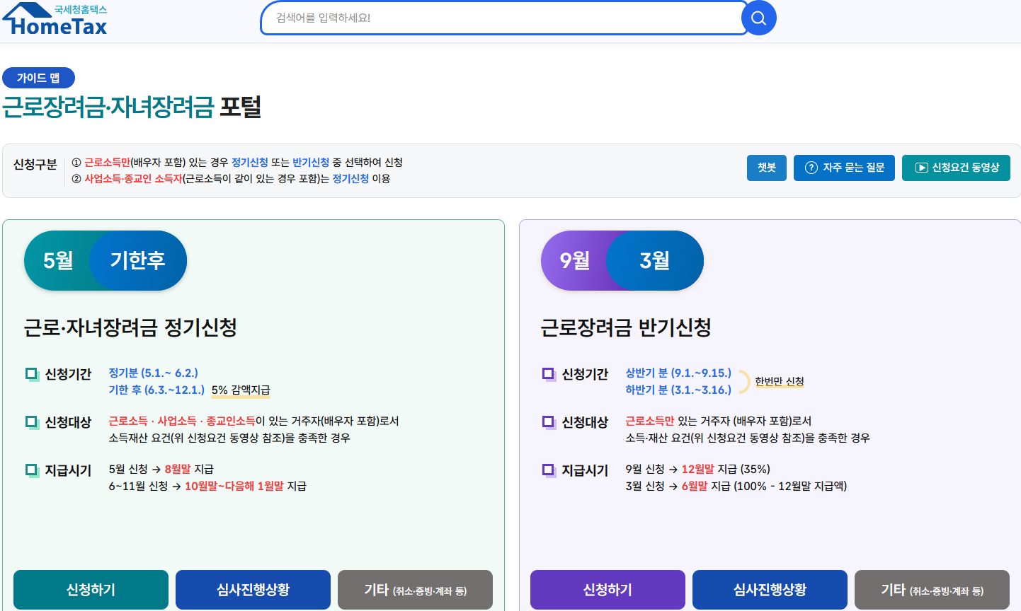 - A. 반기 신청은 근로소득자만 대상이며, 상반기/하반기로 나누어 빠르게 지원받는 제도입니다.