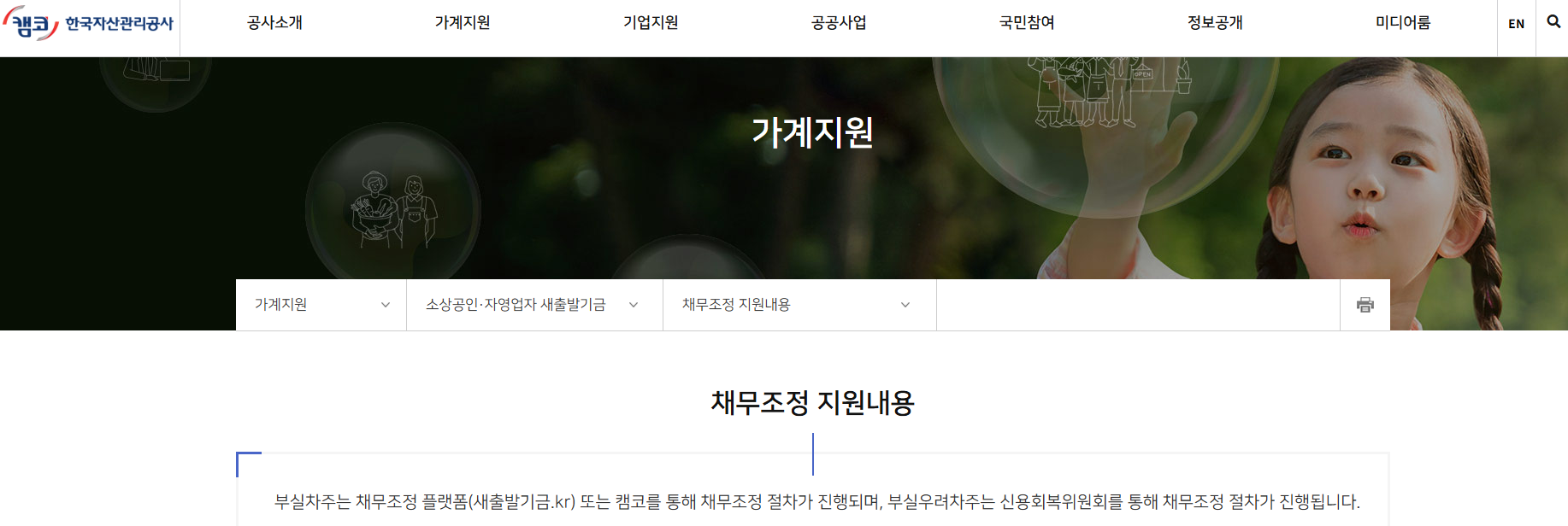 | 행복지킴이 채무조정 | 연체자 대상 채무조정 + 장기 분할상환 | 한국자산관리공사(캠코) |