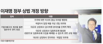 이러한 점들을 고려하여 신정부는 ‘기업 투명성 제고와 지속가능 경영 촉진’을 표방하며 개정안을 마련했습니다.